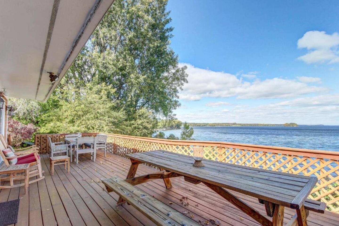 This pet friendly lakefront home offers the best of both worlds: easy access to the water and a convenient location! Rock in the porch chairs or soak in the private hot tub! Inside the home, the kitchen is fully-equipped for preparing meals for large families. All three private bedrooms have lake views and are perfect for couples, while another open bunk style room has a queen bed, and two twins. It's a nice walk to the village of South Hero, or just across the grassy yard to the lakefront.