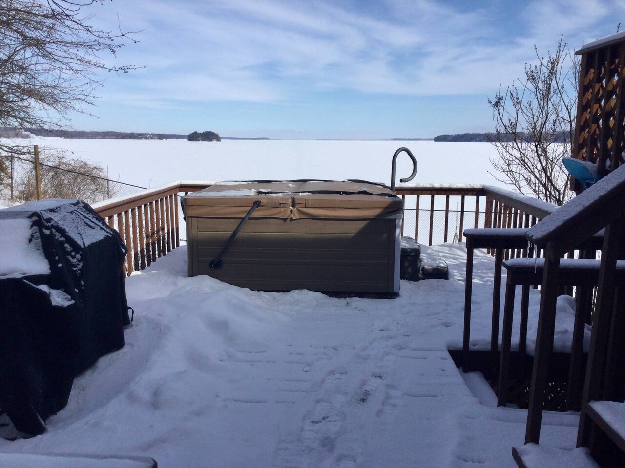 A great , big family freindly place, available year round! Fantastic lakefront, nice dock for kayaking or swimming. Fishing, too. A half hour to Burlington, hour and a half to Montreal. And great snow skiing within an hours drive also. And after a big day out, relax with a beverage in the hot tub.