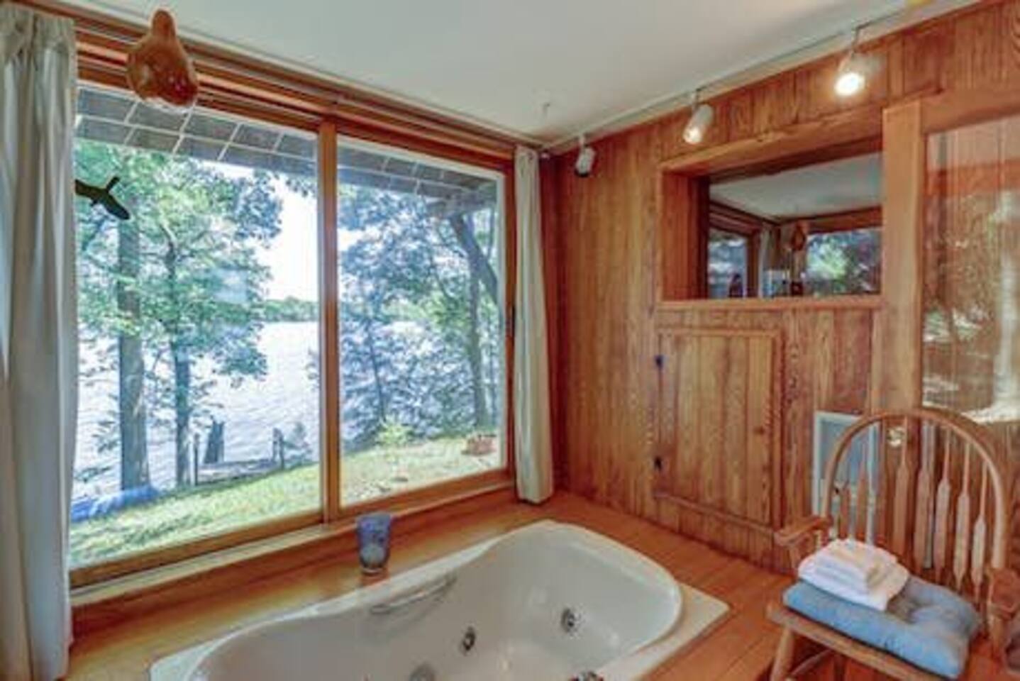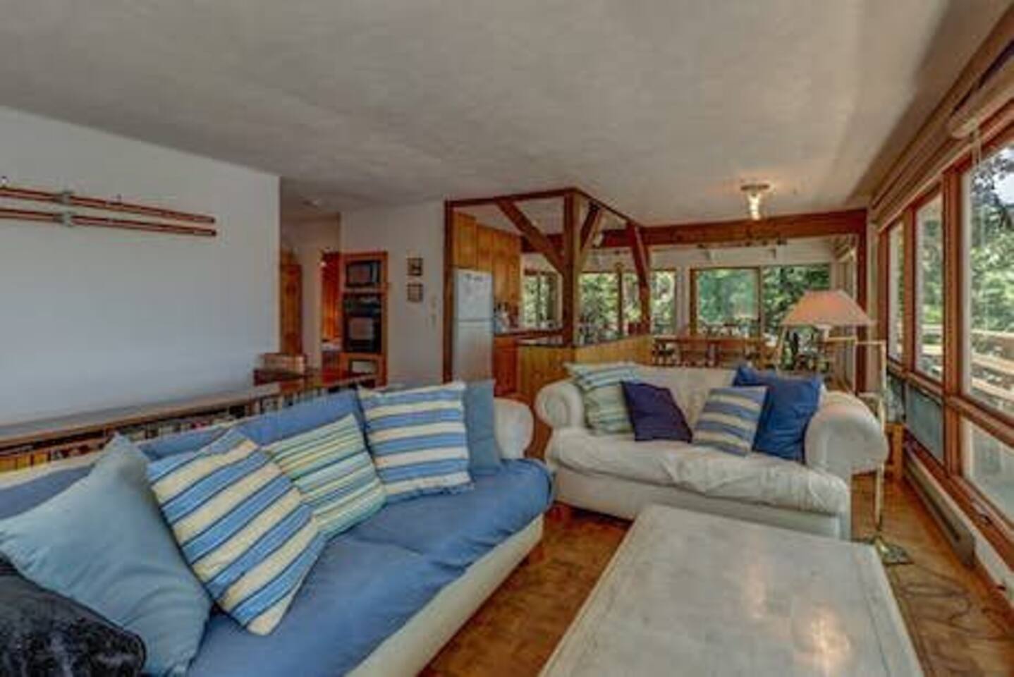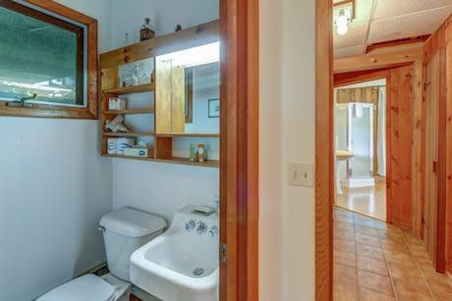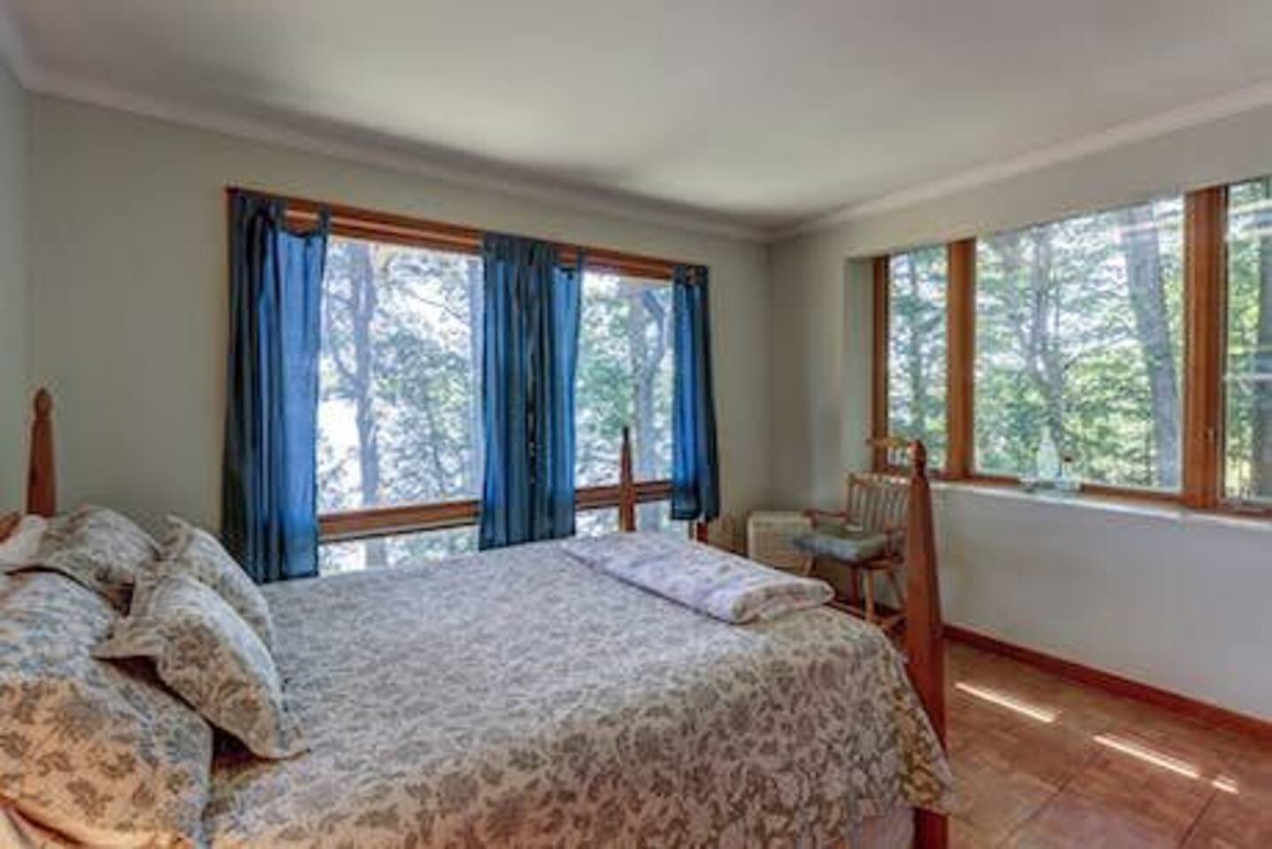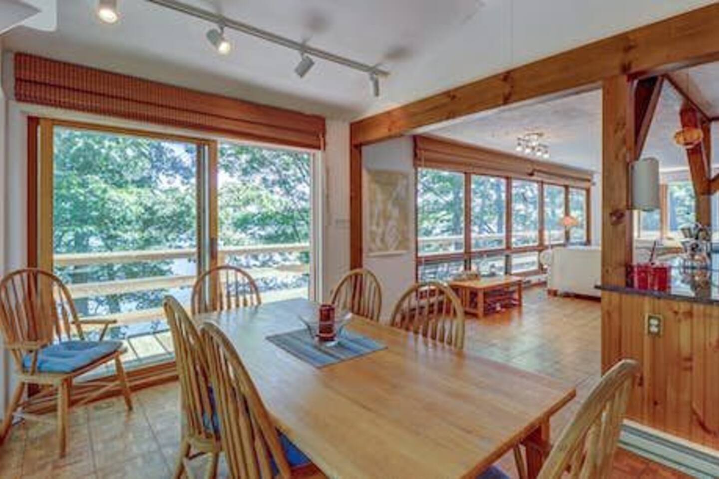 This home overlooks Pelots Bay and is located in North Hero, VT, a small town that's part of the Champlain Islands just 34 miles north of Burlington. The house sits on a private lot surrounded by lush vegetation and amazing views, making it the perfect secluded hideaway. The interior maintains much of its 1970's architecture, with plenty of comfy furniture and big windows to let in the natural light. At the top of the driveway into the home, a rustic building features a sitting room, expansive windows, and a deck with a charcoal grill for a prime entertaining area that's separate from the main house. The upper level of the home is an open concept living space. Inside the house is a cozy TV room with a DVD player and a small DVD collection. With no cable, it's easy to unplug here, though there is free WiFi. Consider spending a night or day playing board games from the in-home collection. Roll up your sleeves and get to work making a delicious meal in the full kitchen, complete with all the necessary appliances (including a dishwasher) and beautiful countertops. Enjoy lots of natural light in the dining area and a beautiful wraparound deck where you can gaze out at the water. Down the hall of the upper level, there are two bedrooms with queen-size bed in each and a large half bathroom. Downstairs offers another two bedrooms, one with a queen-size bed and the other a twin-size, plus a nearby half bath. The lower level also features a spa-like setup, with a private dry sauna and airy full bathroom complete with a shower, jetted tub, and sliding glass doors to the lawn. Step down to the lake via the new stairs from the upper level or the spa bath downstairs - either way, there are plenty of opportunities to enjoy the secluded lot, spacious layout, and gorgeous waterfront views. Alburg Dunes State Park, located seven miles away, provides a place for recreational activities on land, while the surrounding bay and Lake Champlain provide endless opportunities for boating and water sports. Set off in the two adult kayaks and one youth kayak for a fun-filled day on the lake. Plan your summer vacation at this comfortable Lake Champlain home and enjoy all the lake has to offer.