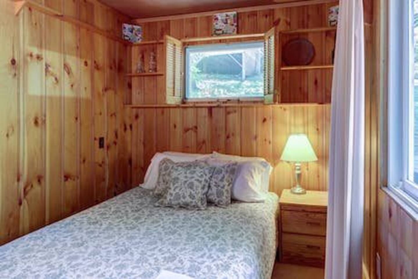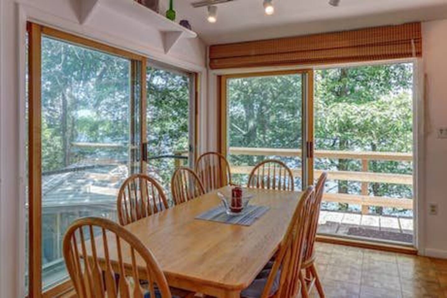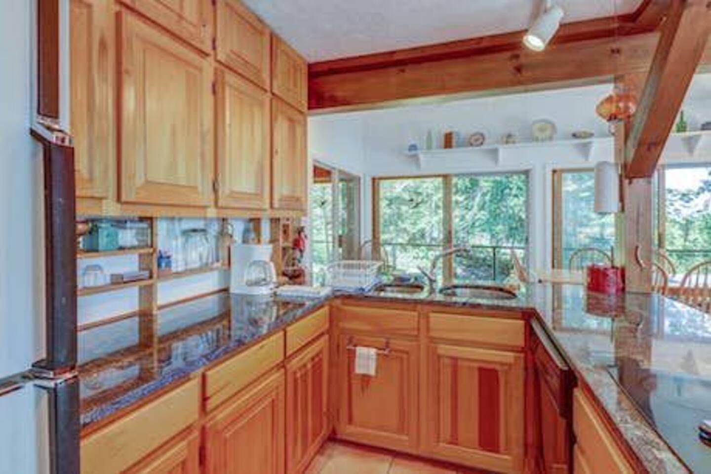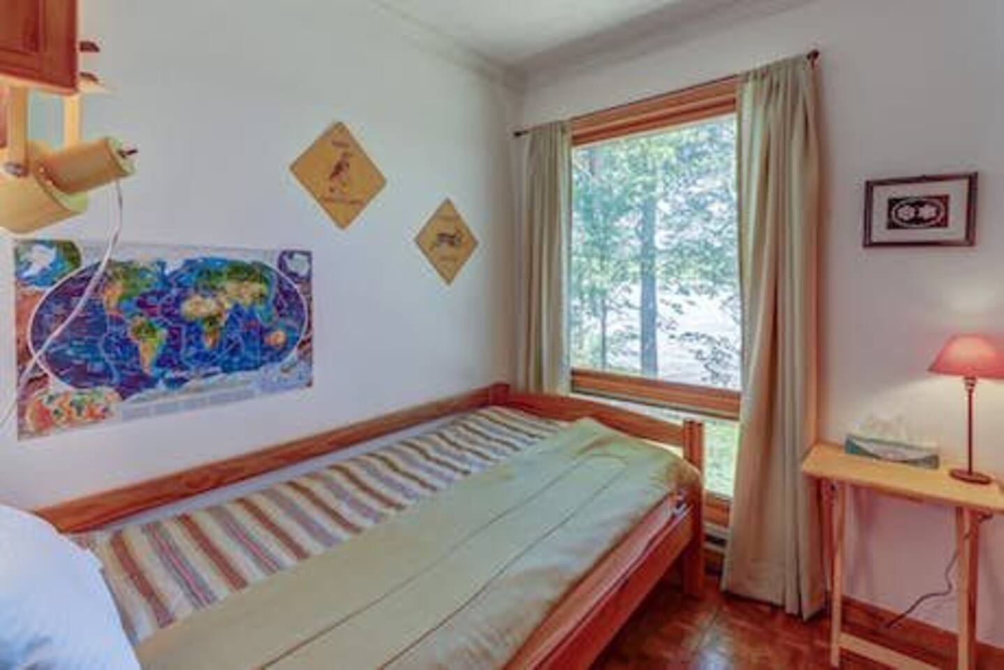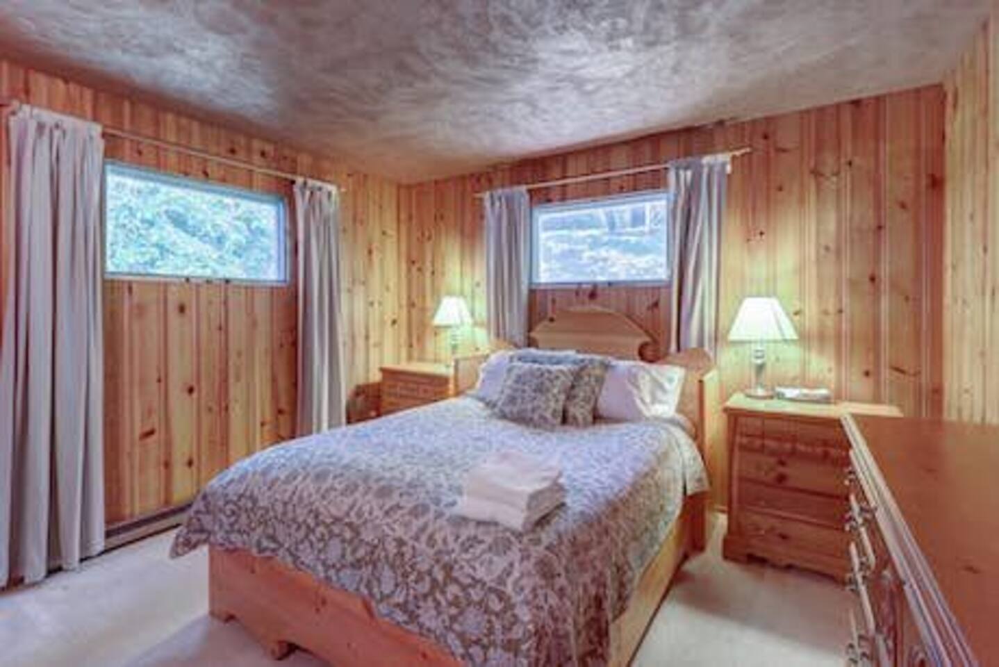 This home overlooks Pelots Bay and is located in North Hero, VT, a small town that's part of the Champlain Islands just 34 miles north of Burlington. The house sits on a private lot surrounded by lush vegetation and amazing views, making it the perfect secluded hideaway. The interior maintains much of its 1970's architecture, with plenty of comfy furniture and big windows to let in the natural light. At the top of the driveway into the home, a rustic building features a sitting room, expansive windows, and a deck with a charcoal grill for a prime entertaining area that's separate from the main house. The upper level of the home is an open concept living space. Inside the house is a cozy TV room with a DVD player and a small DVD collection. With no cable, it's easy to unplug here, though there is free WiFi. Consider spending a night or day playing board games from the in-home collection. Roll up your sleeves and get to work making a delicious meal in the full kitchen, complete with all the necessary appliances (including a dishwasher) and beautiful countertops. Enjoy lots of natural light in the dining area and a beautiful wraparound deck where you can gaze out at the water. Down the hall of the upper level, there are two bedrooms with queen-size bed in each and a large half bathroom. Downstairs offers another two bedrooms, one with a queen-size bed and the other a twin-size, plus a nearby half bath. The lower level also features a spa-like setup, with a private dry sauna and airy full bathroom complete with a shower, jetted tub, and sliding glass doors to the lawn. Step down to the lake via the new stairs from the upper level or the spa bath downstairs - either way, there are plenty of opportunities to enjoy the secluded lot, spacious layout, and gorgeous waterfront views. Alburg Dunes State Park, located seven miles away, provides a place for recreational activities on land, while the surrounding bay and Lake Champlain provide endless opportunities for boating and water sports. Set off in the two adult kayaks and one youth kayak for a fun-filled day on the lake. Plan your summer vacation at this comfortable Lake Champlain home and enjoy all the lake has to offer.