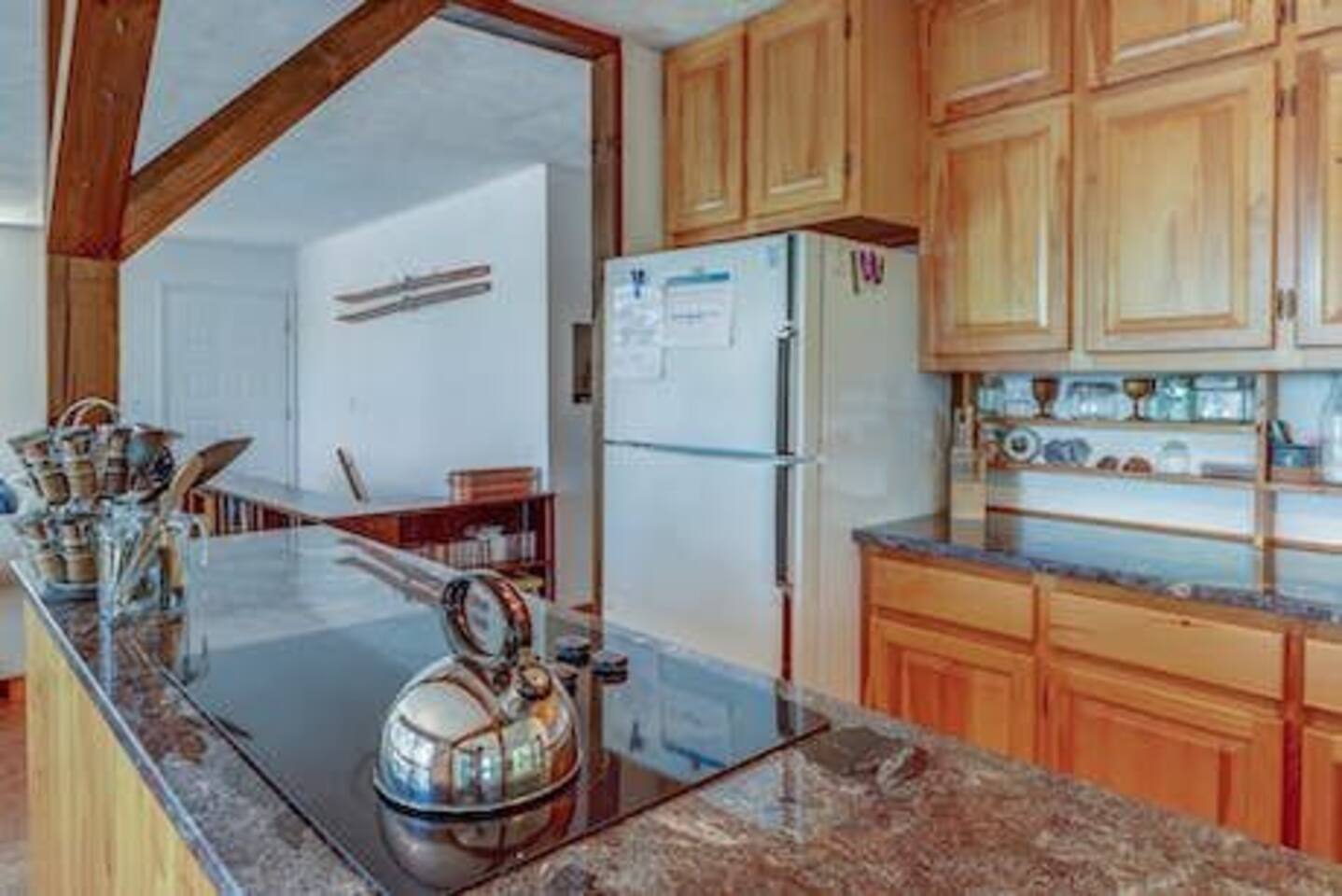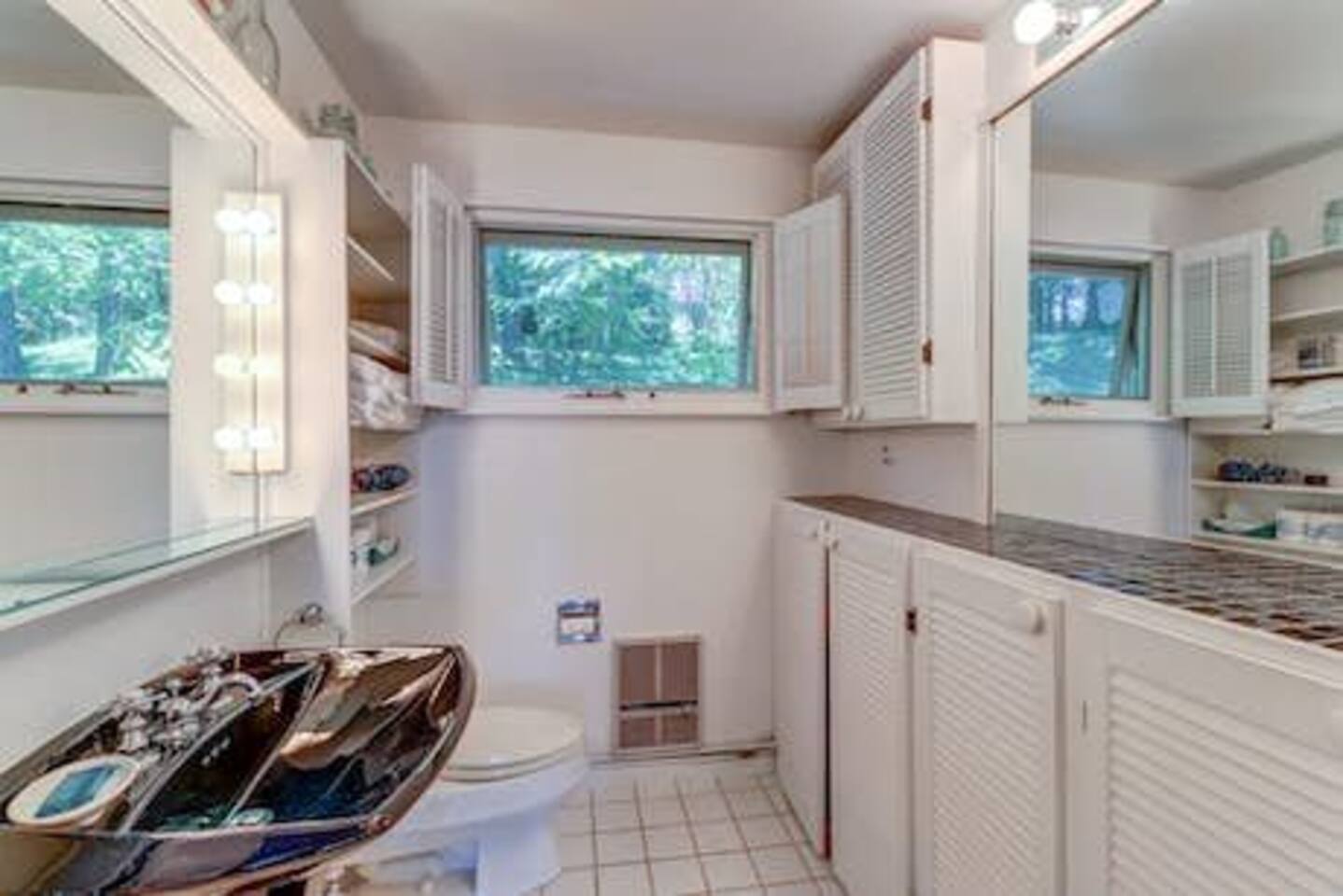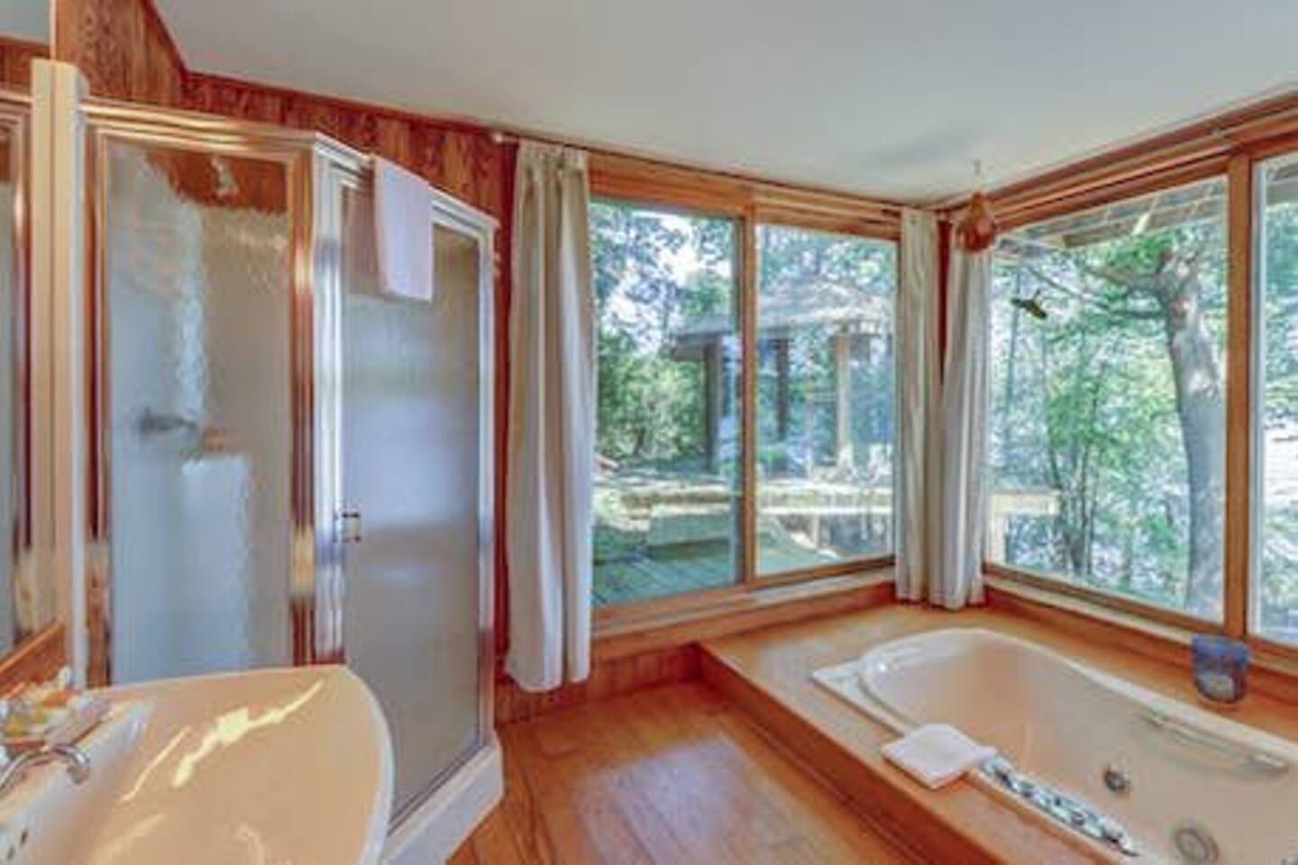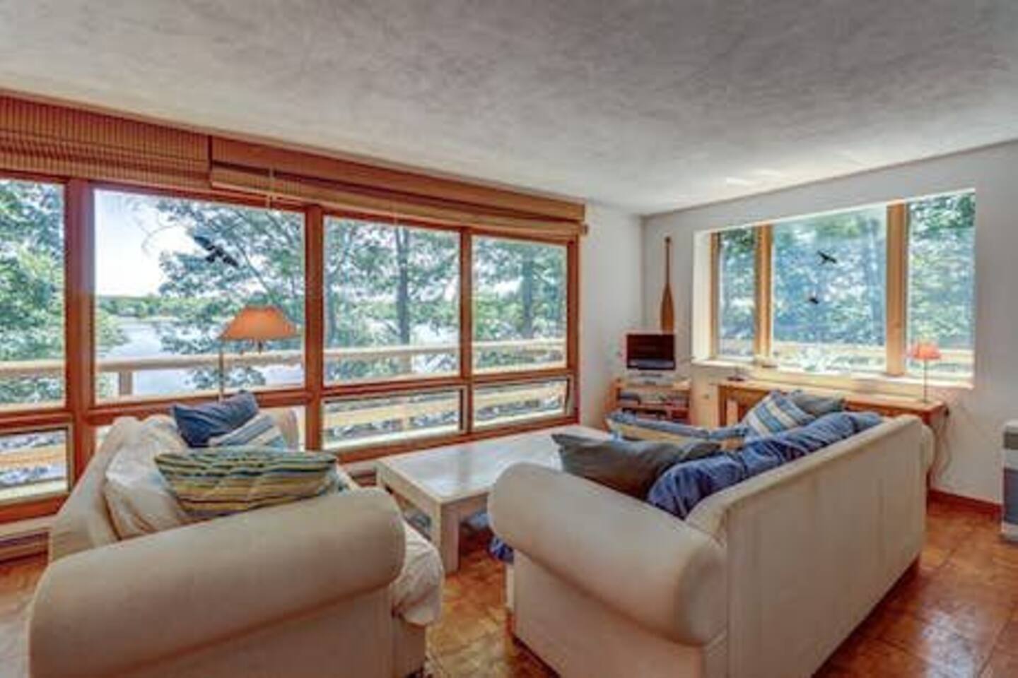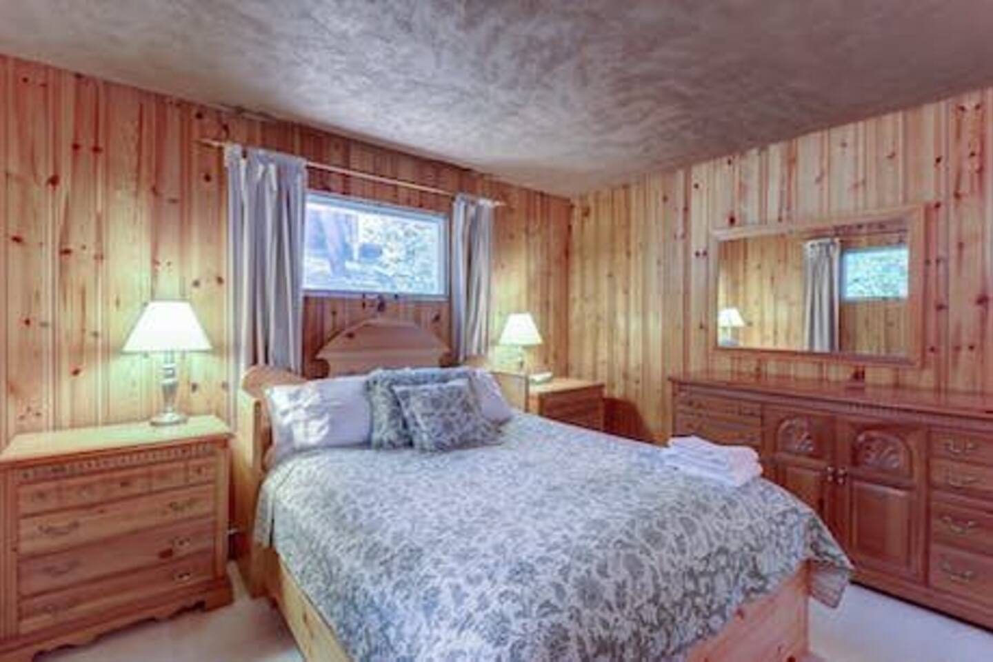 This home overlooks Pelots Bay and is located in North Hero, VT, a small town that's part of the Champlain Islands just 34 miles north of Burlington. The house sits on a private lot surrounded by lush vegetation and amazing views, making it the perfect secluded hideaway. The interior maintains much of its 1970's architecture, with plenty of comfy furniture and big windows to let in the natural light. At the top of the driveway into the home, a rustic building features a sitting room, expansive windows, and a deck with a charcoal grill for a prime entertaining area that's separate from the main house. The upper level of the home is an open concept living space. Inside the house is a cozy TV room with a DVD player and a small DVD collection. With no cable, it's easy to unplug here, though there is free WiFi. Consider spending a night or day playing board games from the in-home collection. Roll up your sleeves and get to work making a delicious meal in the full kitchen, complete with all the necessary appliances (including a dishwasher) and beautiful countertops. Enjoy lots of natural light in the dining area and a beautiful wraparound deck where you can gaze out at the water. Down the hall of the upper level, there are two bedrooms with queen-size bed in each and a large half bathroom. Downstairs offers another two bedrooms, one with a queen-size bed and the other a twin-size, plus a nearby half bath. The lower level also features a spa-like setup, with a private dry sauna and airy full bathroom complete with a shower, jetted tub, and sliding glass doors to the lawn. Step down to the lake via the new stairs from the upper level or the spa bath downstairs - either way, there are plenty of opportunities to enjoy the secluded lot, spacious layout, and gorgeous waterfront views. Alburg Dunes State Park, located seven miles away, provides a place for recreational activities on land, while the surrounding bay and Lake Champlain provide endless opportunities for boating and water sports. Set off in the two adult kayaks and one youth kayak for a fun-filled day on the lake. Plan your summer vacation at this comfortable Lake Champlain home and enjoy all the lake has to offer.