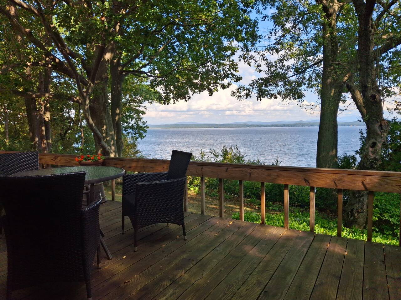 Incredible location that feels homey. Total privacy, and incredible views of Stowe over lake Champlain.
